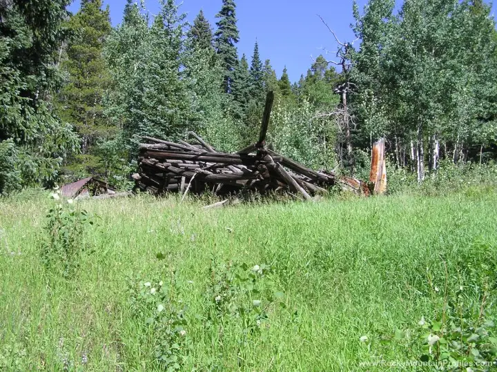 Some people claim this town was vandalized and all the weathered wood was removed to decorate a few rich peoples houses. After looking around I almost believe them as there is not much left to see. At least they did take the mill wood. A nice house in the woods and a close look around and you can find a few remnants of the town. This was like several other small camps close to big producing mines. These camps never really grew into much of a town. They were just a convenient place to live close by the mines. Champion, Lone Star and Bluebird Mines.