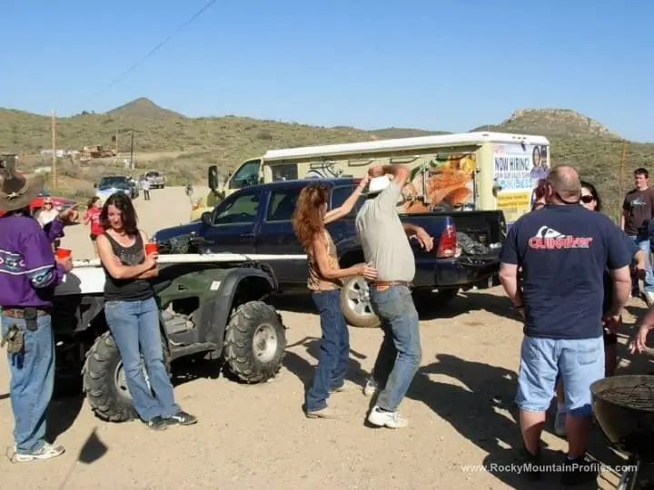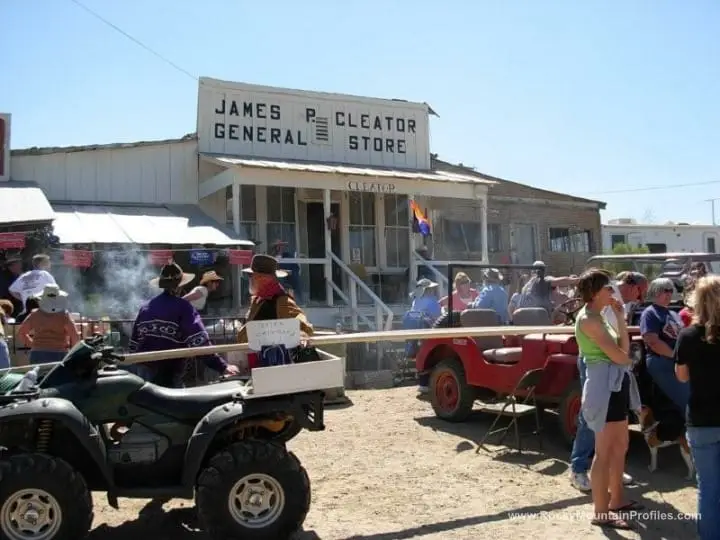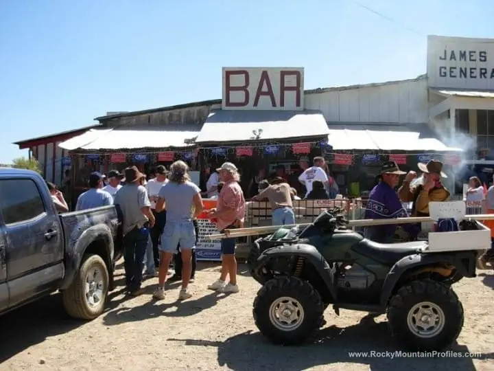 On my back down from Crown King I stopped by the Cleater Bar to see what all the fuss was about. I saw in your site that this place was a ghost town. So I really had to stop by. There was no room to park in front of the Bar. I had to Park about a quarter mile away from the bar. As I walked up to the Bar I could hear music Playing and People hootin Hollaring. I saw Smoke rising in front and as I got closer I could smell the fine odor of meat being cooked over a wood fire. Out front was a band playing and People dancing in the dirt. What a site to be seen. I navagated my way into the bar and was met by the Owner Dave and His Wife Darlene. As I looked around I thought to myself sure is a lot of activity going on around here for a Ghost town. So I asked is this the way it is around here all the time. They smiled and I was filled in that this was a fund raiser for the Cleater water pipe line. They told me that the old pipe line that is used to carry water to the town is on its last leggs and the town did not have the money to get a new one put in so they decided to through one heck of a party and the proceeds would go to the Cleater water line Fund. It was a great time had by all. I took lots of photo’s because if I tried to tell someone what I saw there I am sure that they would not beleive me. If I knew how to insert the photo’s I would do that for your view pleasure. If you are ever going to Crown King make sure you stop by and say hello to Dave and Darlene. My Name is Lyle and I live in Peoria Arizona. E-mail(lyleclark@cox.net)